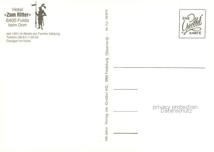 Fulda Hotel zum Ritter Fulda postalisch nicht gelaufen nach 1965 Erhaltung siehe scans [PaolaD17] PaolPID1