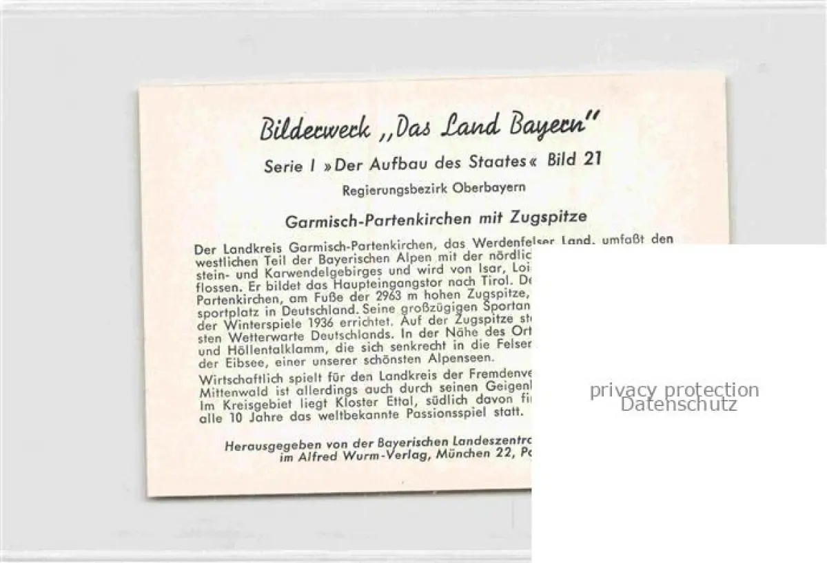 GARMISCH-PARTENKIRCHEN Bayern Ortspartie mit Zugspitzblick postalisch nicht gelaufen Werbekarte (keine Postkarte) Erhaltung siehe scans [WerneD78] Werbekarte (keine Postkarte) Wern Katcode 11110009180117