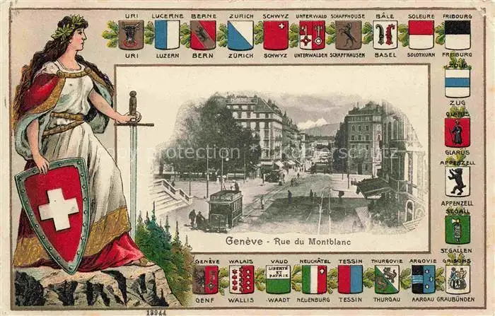 AK / Ansichtskarte GENEVE Genf GE Rue du Montblanc Kantonswappen Passpartout