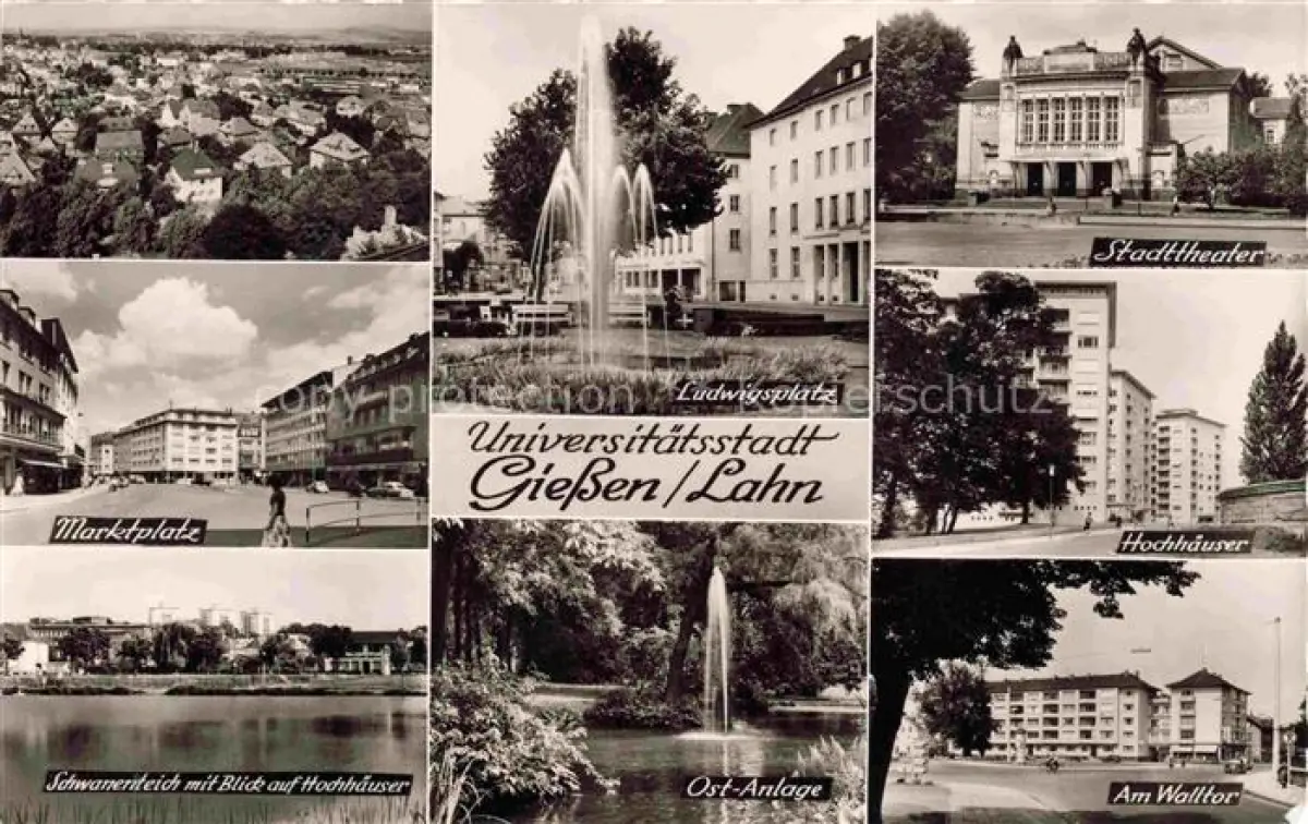 AK / Ansichtskarte GIEssEN Lahn Marktplatz Schwanenteich Ludwigsplatz Ost Anlage Stadttheater Hochhaeuser Am Walltor