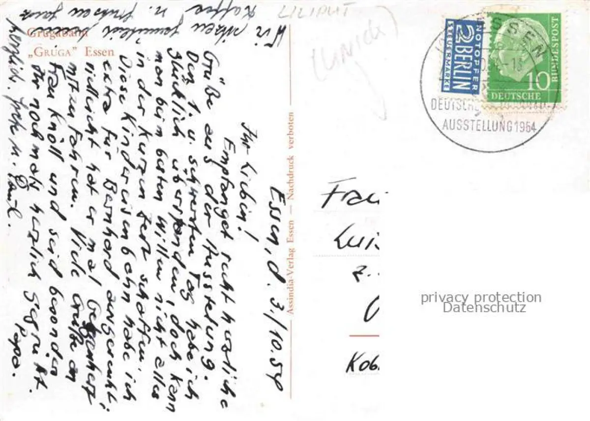 alte Postkarte GRUGA Ausstellungspark EssEN Ruhr Liliputbahn Kleinbahn Eisenbahn postalisch gelaufen Erhaltung siehe scans [SanaeD93]