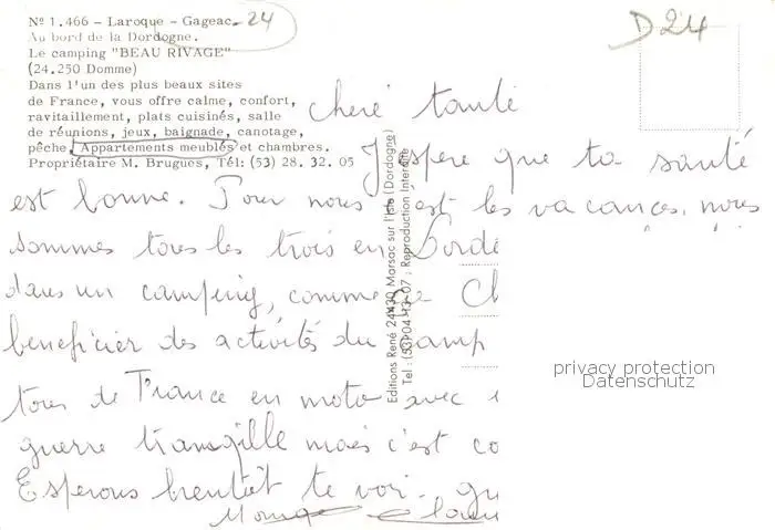 Gageac-et-Rouillac_24_Dordogne Camping Beau Rivage Vue d'ensemble postalisch nicht gelaufen nach 1965 Erhaltung siehe scans [WerneD78] WernPID7