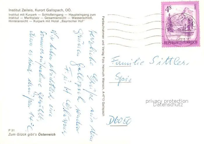 Gallspach Institut Zeileis Marktplatz Hotel Bayrischer Hof Wasserschloss Gallspach postalisch gelaufen nach 1965 Erhaltung siehe scans [PaolaD17] PaolPID1