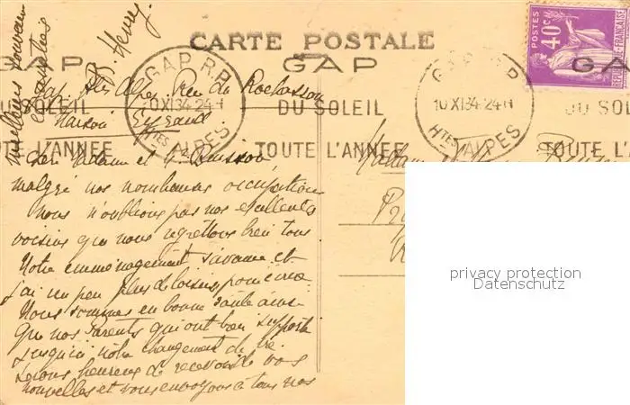 Gap_Hautes-Alpes Les Andrieux Gap_Hautes-Alpes postalisch gelaufen 1934 Erhaltung siehe scans [LiesaD40] LiesID40