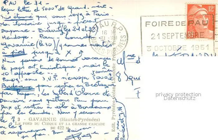 Gavarnie_Hautes-Pyrenees Le fond du cirque et la grande cascade Gavarnie Hautes-Pyrenees postalisch gelaufen 1951 Erhaltung siehe scans [FriedD77] Frierer
