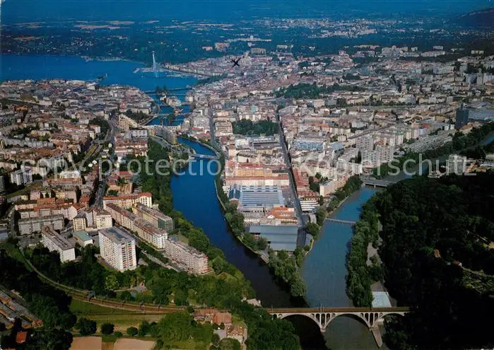 AK / Ansichtskarte Geneve_GE La jonction du Rhone et de l Arve vue aerienne Geneve_GE