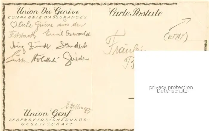Geneve_GE Union Vie Geneve Compagnie d'Assurances Geneve_GE postalisch nicht gelaufen 1921-1965 Erhaltung siehe scans [FriedD77] Frierer