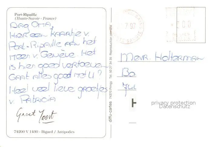 Genf_GE Port Ripaille Fliegeraufnahme Genf_GE postalisch gelaufen 1997 Erhaltung siehe scans [KathaD81] Kathoren
