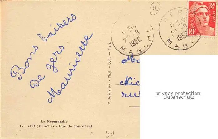 Ger_Avranches_50_Manche Rue de Sourdeval postalisch gelaufen 1952 Erhaltung siehe scans [FriedD77] Frierer