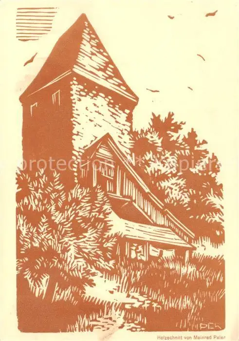 AK / Ansichtskarte Gerlafingen_SO Turm Kuenstlerkarte Holzschnitt Meinrad Peler