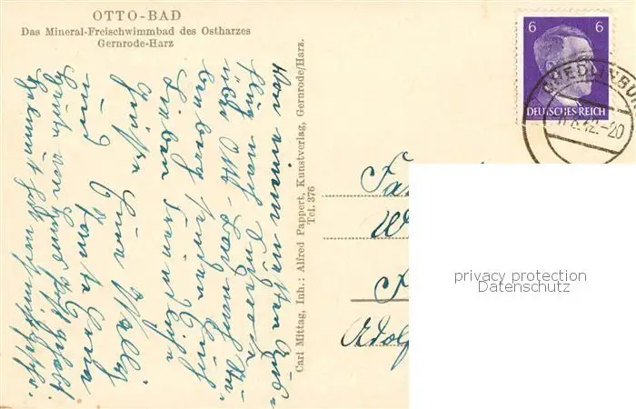 Gernrode_Harz Otto Bad Gernrode Harz postalisch gelaufen 1942 Erhaltung siehe scans [WerneD78] WernPID7