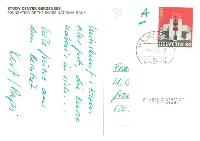 Gerzensee Study Center Foundation of Swiss National Bank Fliegeraufnahme Gerzensee postalisch gelaufen 1994 Erhaltung siehe scans [FriedD77] Frierer