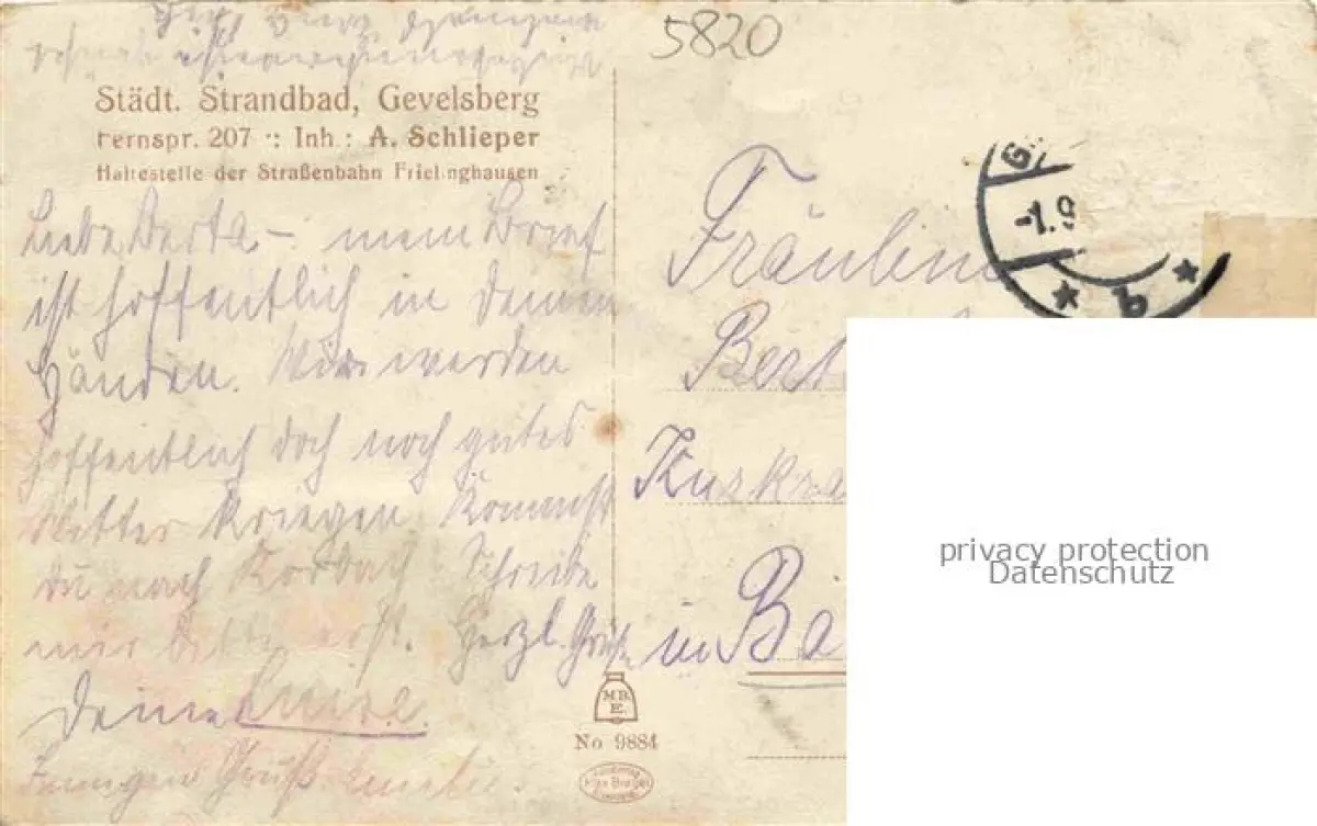 alte Postkarte Gevelsberg Strandbad postalisch gelaufen Erhaltung siehe scans [WerneD78]