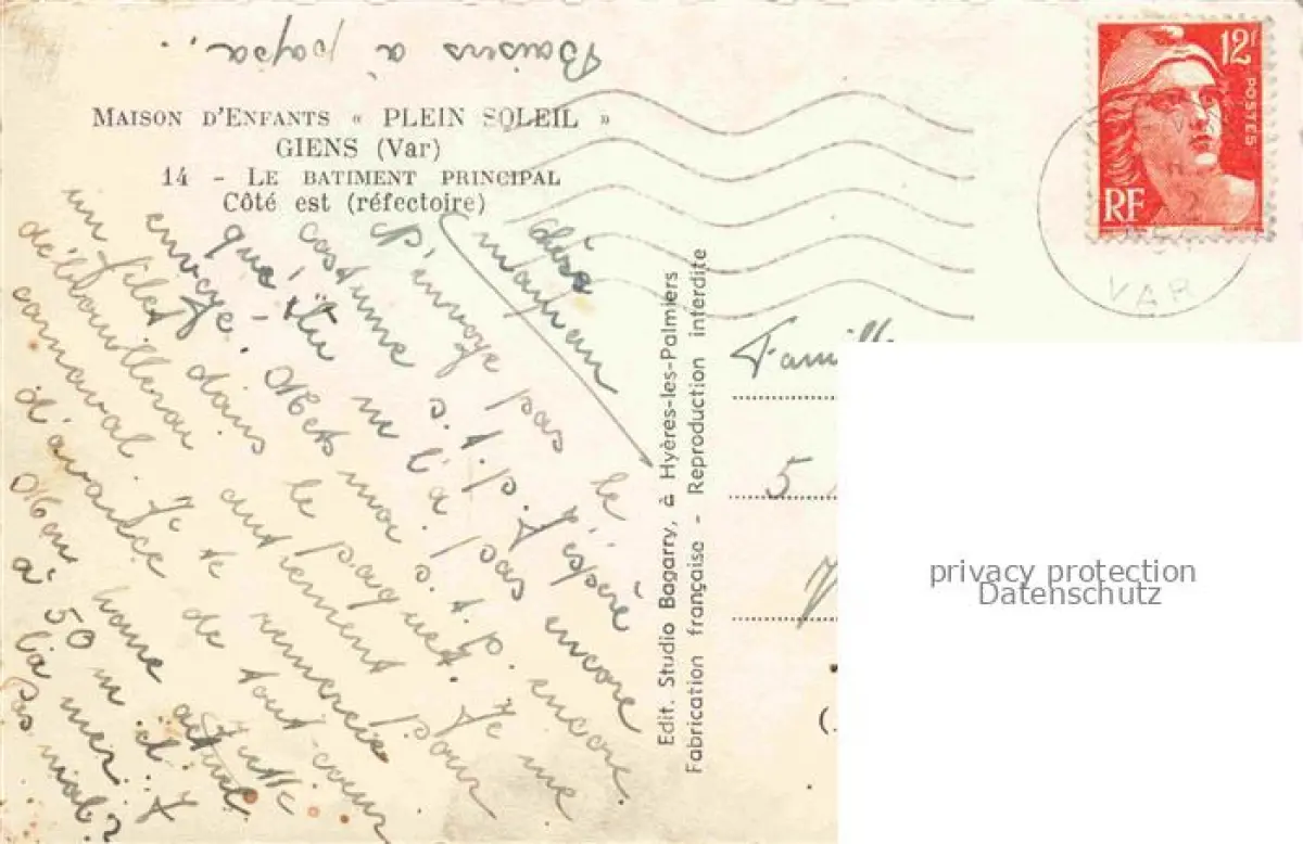 14077726 Giens Hyeres TOULON 83 Var Le Batiment Principal postalisch gelaufen Erhaltung siehe scans [WerneD78] carte postale Wern Katcode 11170083283069