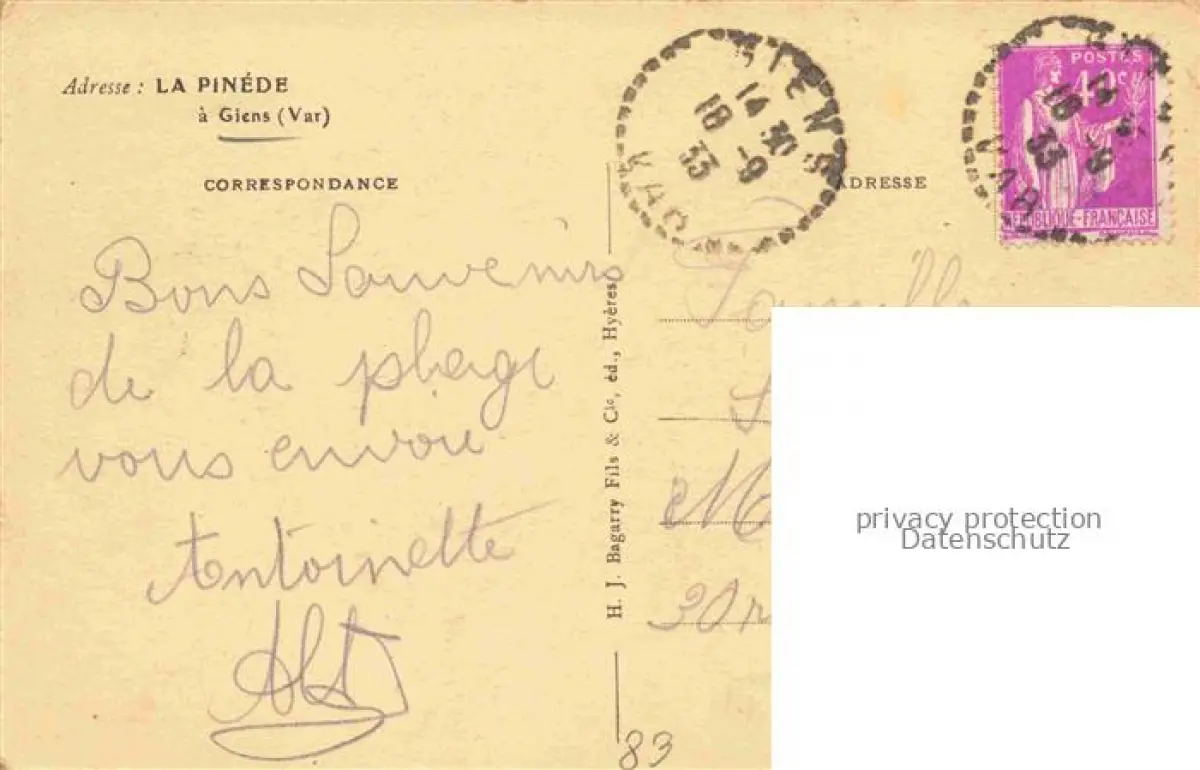 14114367 Giens Hyeres TOULON 83 Var Residence La Pinéde postalisch gelaufen Erhaltung siehe scans [FriedD77] carte postale Frie Katcode 11170083283069