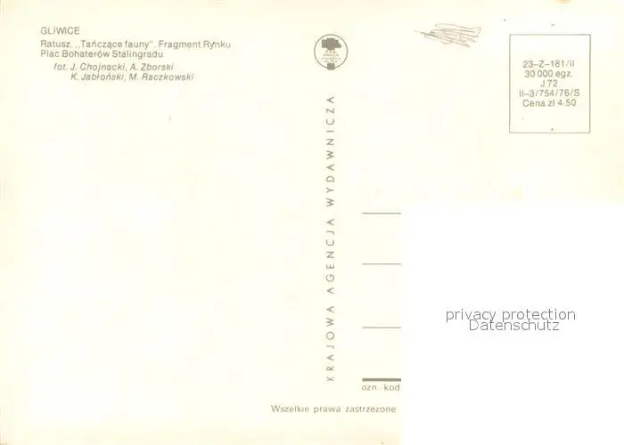 Gliwice_Gleiwitz Ratusz Tanczace fauny Fragment Rynku Plac Bohaterow Stalingradu Gliwice_Gleiwitz postalisch nicht gelaufen nach 1965 Erhaltung siehe scans [WerneD78] WernPID7