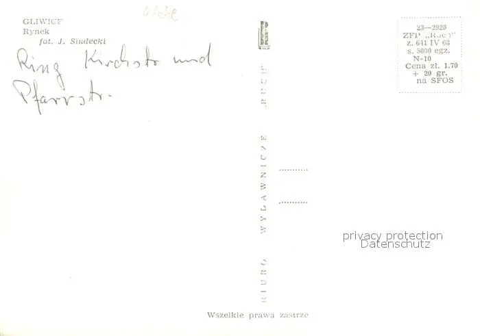 Gliwice_Gleiwitz Rynek Gliwice_Gleiwitz postalisch nicht gelaufen nach 1965 Erhaltung siehe scans [WerneD78] WernPID7