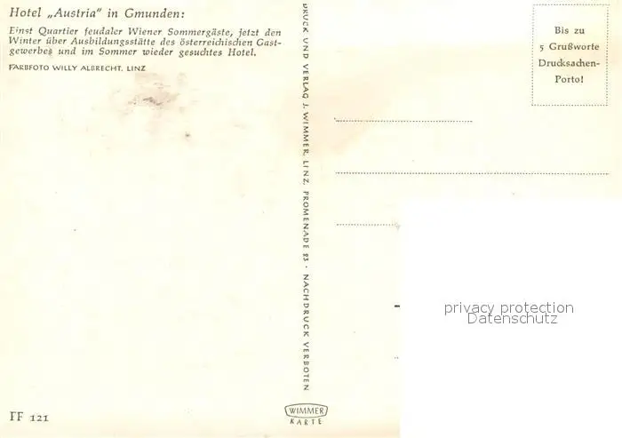 Gmunden_Salzkammergut Hotel Austria Gmunden Salzkammergut postalisch nicht gelaufen nach 1965 Erhaltung siehe scans [FriedD77] Frierer