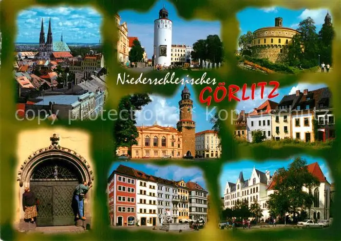 AK / Ansichtskarte Goerlitz_Sachsen Stadtbild mit Kirche Frauenturm Dicker Turm Portal Altstadt Goerlitz Sachsen