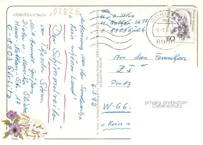 Goerlitz__Sachsen Sehenswuerdigkeiten Historische Stadt an der Neisse Blumenuhr postalisch gelaufen 1992 Erhaltung siehe scans [FriedD77] Frierer