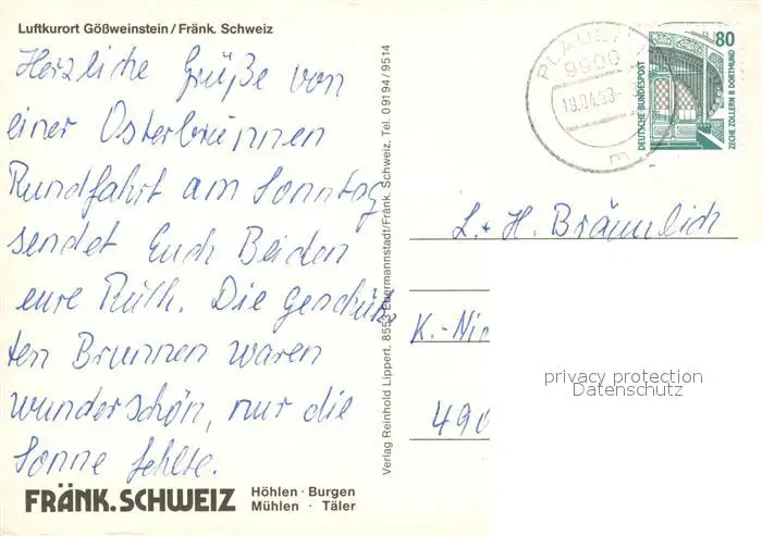 Goessweinstein mit Kirche Goessweinstein postalisch gelaufen 1998 Erhaltung siehe scans [LiesaD40] LiesID40
