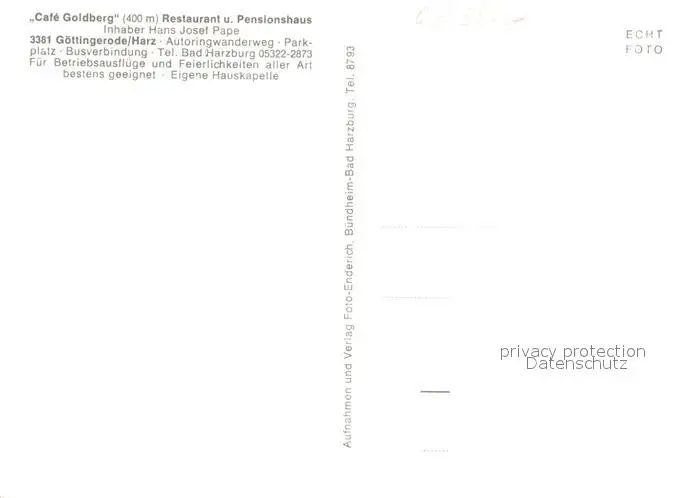 Goettingerode Waldcafe Goldberg Restaurant Gaststube Freiterrasse Goettingerode postalisch nicht gelaufen 1921-1965 Erhaltung siehe scans [WerneD78] WernPID7