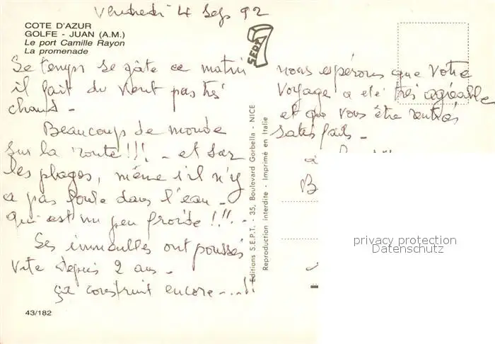 Golfe-Juan Le port Camille Rayon La promenade Golfe-Juan postalisch nicht gelaufen 1992 Erhaltung siehe scans [WerneD78] WernPID7