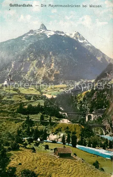 AK / Ansichtskarte Gotthardbahn mit Mayenreussbruecken bei Wassen Gotthardbahn