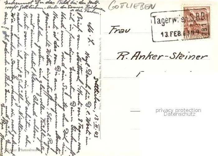 Gottlieben Bodensee Boot Gottlieben postalisch gelaufen 1943 Erhaltung siehe scans [NatalD47] NataID47