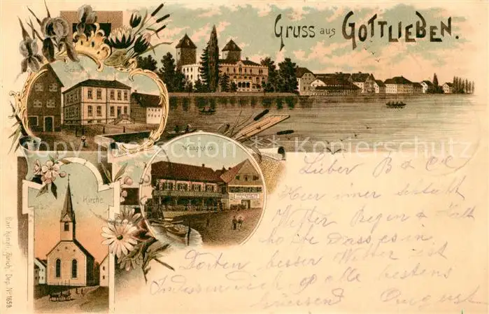 Gottlieben Schule Waaghaus Kirche Gottlieben postalisch gelaufen 1899 Erhaltung siehe scans [WerneD78] WernPID7