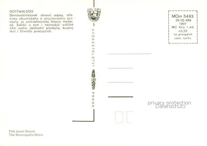 Gottwaldov_Tschechien Stadtpanorama Gebaeude Blumenbeet Denkmal Gottwaldov Tschechien postalisch nicht gelaufen nach 1965 Erhaltung siehe scans [FriedD77] Frierer