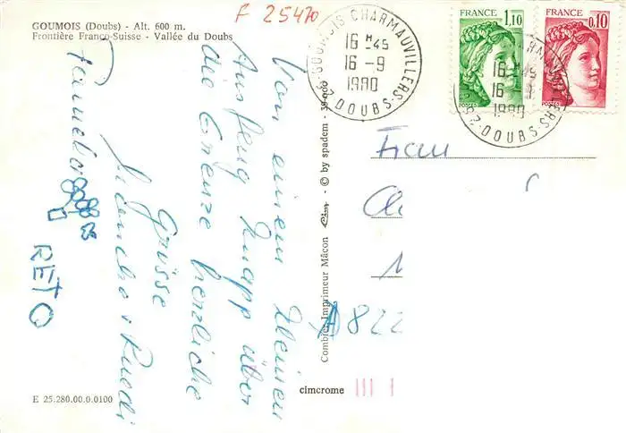 Goumois_Doubs Frontiere Franco Suisse Vallee du Doubs Vue aerienne Goumois Doubs postalisch gelaufen 1980 Erhaltung siehe scans [WerneD78] WernPID7