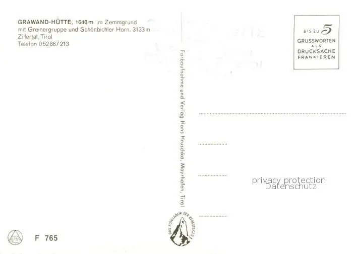Grawandhuette_1640m_Zillertal_AT Panorama postalisch nicht gelaufen nach 1965 Erhaltung siehe scans [WerneD78] WernPID7