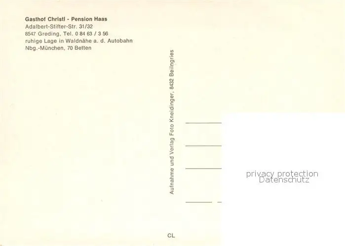 Greding Gasthof Christl Gaststube Kirche Greding postalisch nicht gelaufen nach 1965 Erhaltung siehe scans [WerneD78] WernPID7