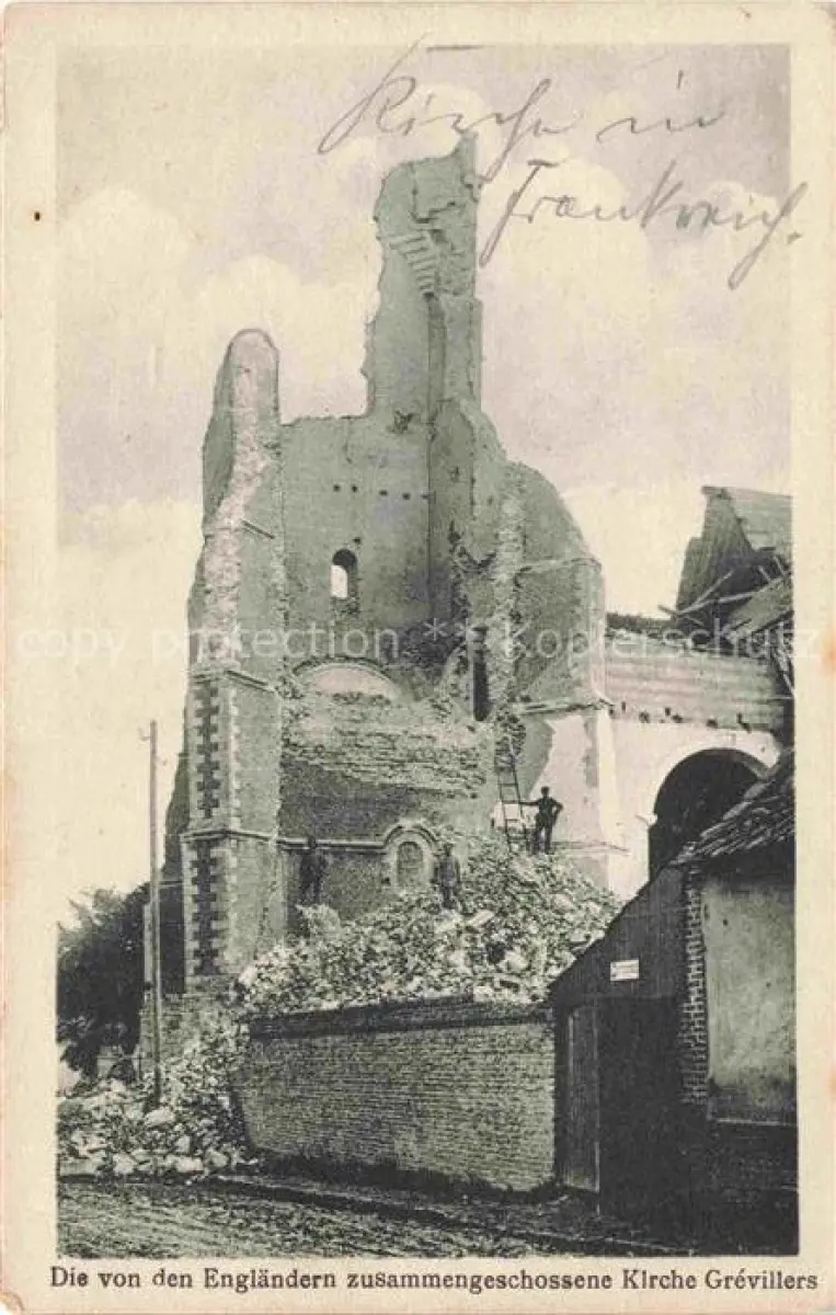 14096215 Grevillers ARRAS 62 Pas-de-Calais Die von den Englaendern zerschossene Kirche Truemmer 1. Weltkrieg postalisch nicht gelaufen Erhaltung siehe scans [FriedD77] Frie Katcode 11170062162387
