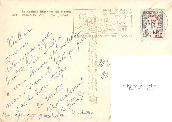 Grimaud_83 Vue generale postalisch gelaufen 1965 Erhaltung siehe scans [WerneD78] WernPID7