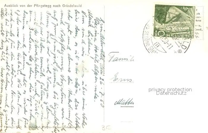 Grindelwald Ausblick von der Pfingstegg Berner Alpen Grindelwald postalisch gelaufen 1950 Erhaltung siehe scans [FriedD77] Frierer