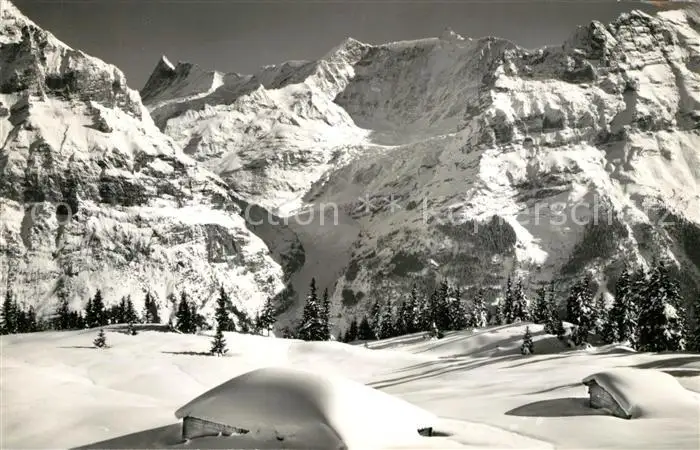 AK / Ansichtskarte Grindelwald Bussalp Finsteraarhorn Fieschenhoerner Winter Grindelwald