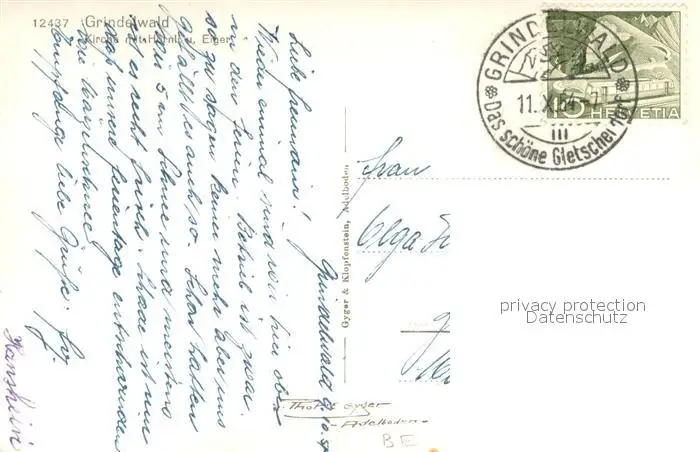 Grindelwald Kirche mit Hoernli und Eiger Berner Alpen Grindelwald postalisch gelaufen 1954 Erhaltung siehe scans [FriedD77] Frierer