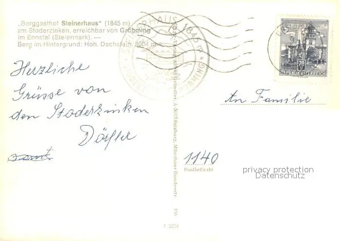 Groebming_Steiermark Berggasthof Steinerhaus im Ennstal mit Hohem Dachstein Groebming_Steiermark postalisch gelaufen nach 1965 Erhaltung siehe scans [WerneD78] WernPID7