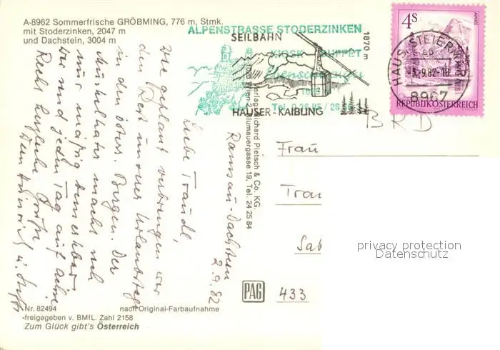 Groebming_Steiermark Fliegeraufnahme mit Stoderzinken und Dachstein Groebming_Steiermark postalisch gelaufen 1982 Erhaltung siehe scans [WerneD78] WernPID7