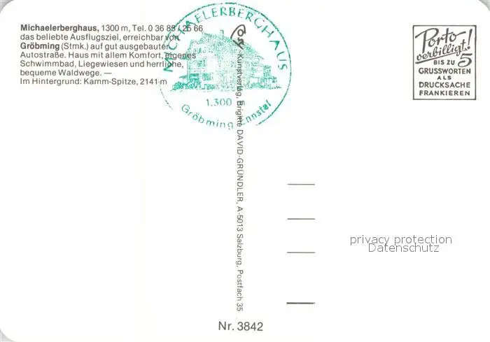 Groebming_Steiermark Michaelerberghaus Berggaststaette mit Kammspitze Dachsteingebirge Groebming_Steiermark postalisch nicht gelaufen nach 1965 Erhaltung siehe scans [FriedD77] Frierer