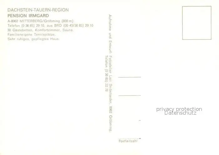 Groebming_Steiermark Pension Irmgard Landschaftspanorama Dachstein Tauern Region Groebming_Steiermark postalisch nicht gelaufen nach 1965 Erhaltung siehe scans [FriedD77] Frierer