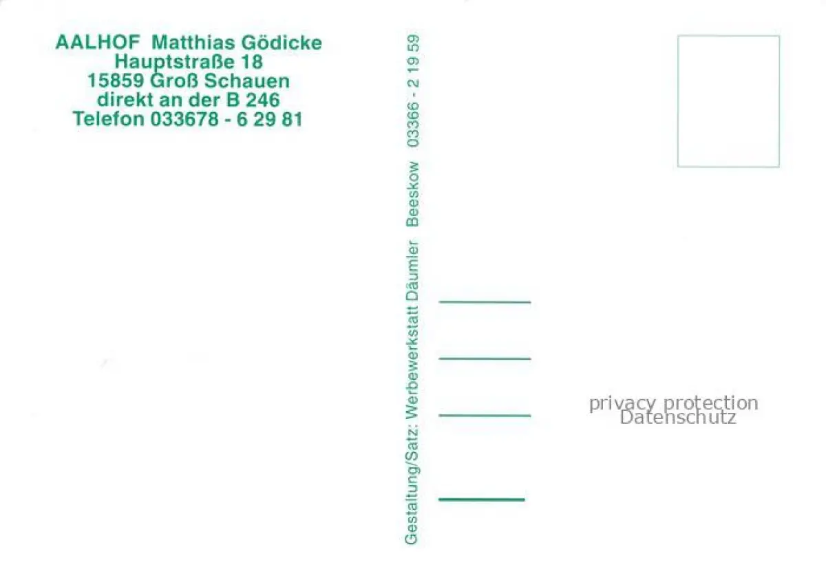 Gross-Schauen Storkow Mark Brandenburg Aalhof Matthias Goedicke Terrasse Theke Aalraeucherei postalisch nicht gelaufen Erhaltung siehe scans [WerneD78]