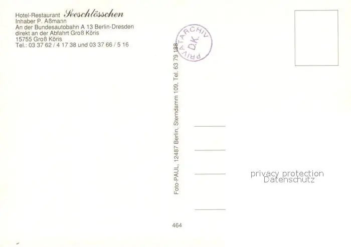 Gross_Koeris Hotel Restaurant Seeschloesschen Bootsanleger Gross Koeris postalisch nicht gelaufen nach 1965 Erhaltung siehe scans [FriedD77] Frierer