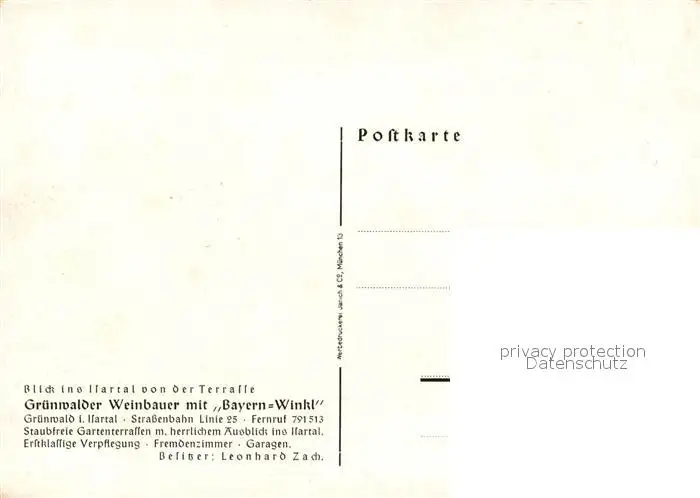 Gruenwald_Muenchen Gruenwalder Weinbauer Terrasse Blick ins Isartal Gruenwald Muenchen postalisch nicht gelaufen 1921-1965 Erhaltung siehe scans [FriedD77] Frierer