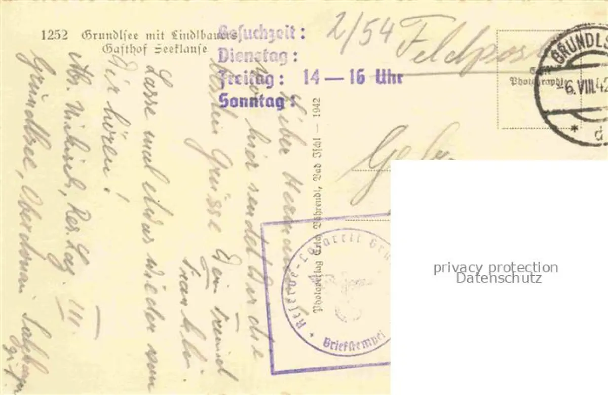 74121887 Grundlsee Steiermark AT Gasthof Lindlbauer Seeklause Alpenblick Feldpost postalisch gelaufen Erhaltung siehe scans [FriedD77] alte Postkarte Frie Katcode 11390222061215