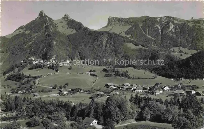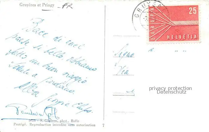 alte Postkarte Gruyeres Gruyere Greyerz FR Vue générale et Pringy vue aérienne postalisch gelaufen Fliegeraufnahme Erhaltung siehe scans [FriedD77]