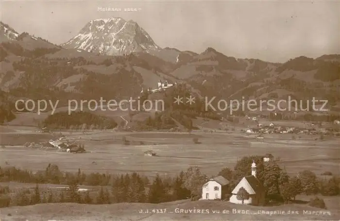 Gruyeres__Gruyere_FR Vu de Broc Chapelle des Marches postalisch nicht gelaufen 1921-1965 Erhaltung siehe scans [WerneD78] WernPID7