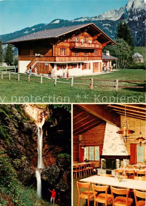 AK / Ansichtskarte Gstaad_BE Grellinger Ferienhaus Heitimatte Wasserfall Gaststube